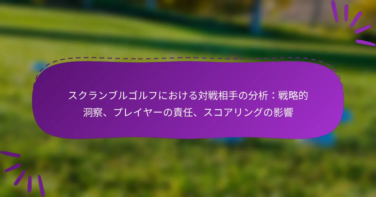スクランブルゴルフにおける対戦相手の分析は、競争優位を得るために不可欠です。これにより、プレイヤーは競争相手の強みと弱みを基に戦略を調整できます。各チームメンバーは、パフォーマンスと意思決定を最適化する上で重要な役割を果たし、これがスコアに直接影響を与え、全体的なゲームプレイに影響を及ぼします。これらの洞察を活用することで、チームはコースでの成功の可能性を高めることができます。